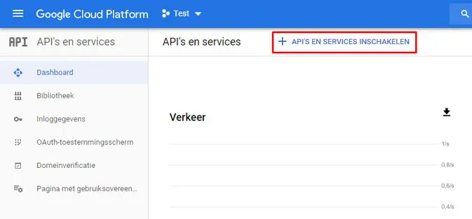 - Klik op ‘API’s EN SERVICES INSCHAKELEN’