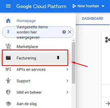 Als je al een factureringsaccount hebt ingesteld met je Google account, kun je deze stap nagenoeg overslaan. Je moet echter bij ‘Facturering’ het factureringsaccount koppelen. Dat doe je door op ‘Facturering’ te klikken in het menu en vervolgens bij ‘een factureringsaccount linken’ het juiste factureringsaccount aan te klikken.